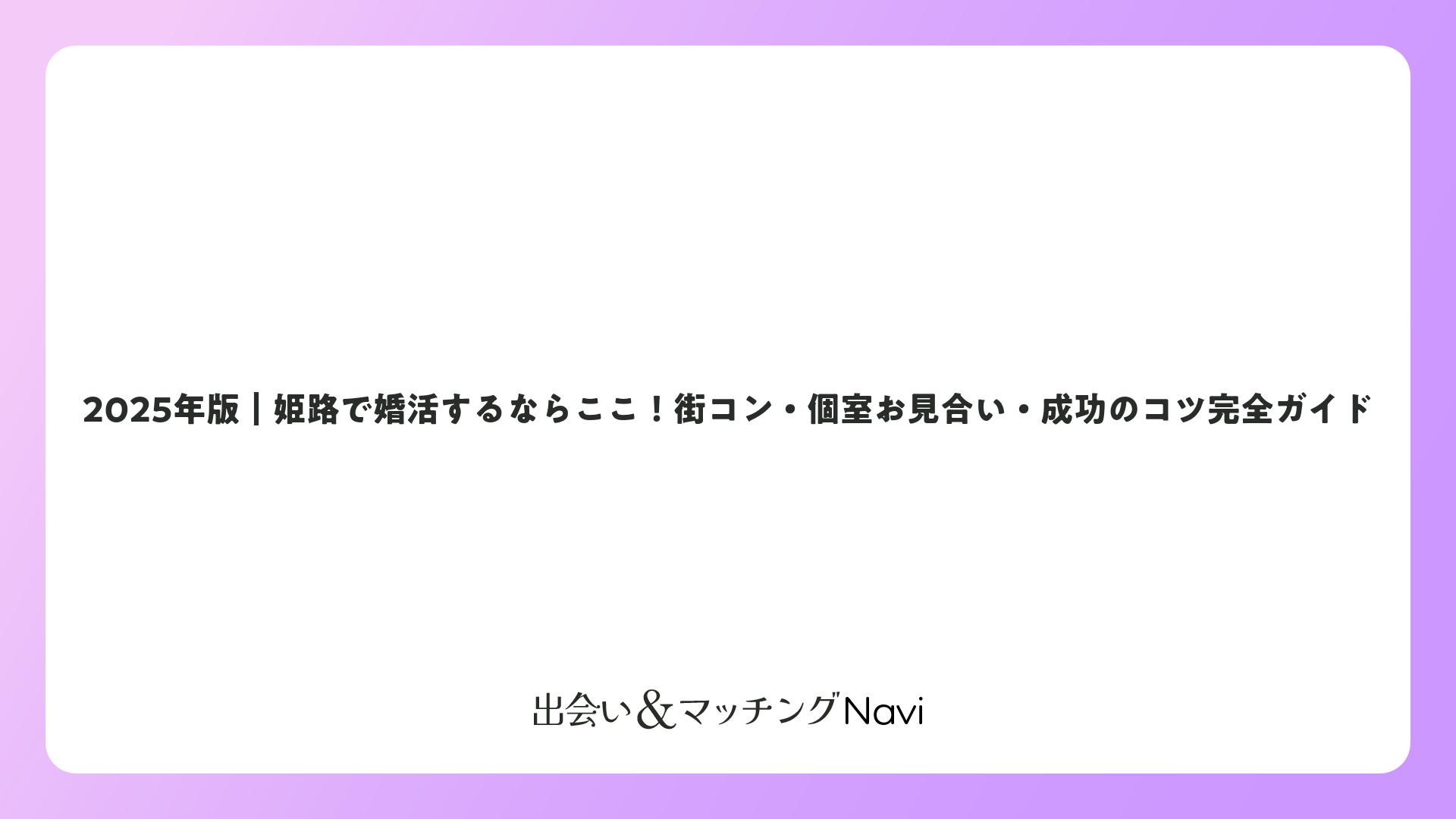 2025年版|姫路で婚活するならここ!街コン・個室お見合い・成功のコツ完全ガイドをまとめました