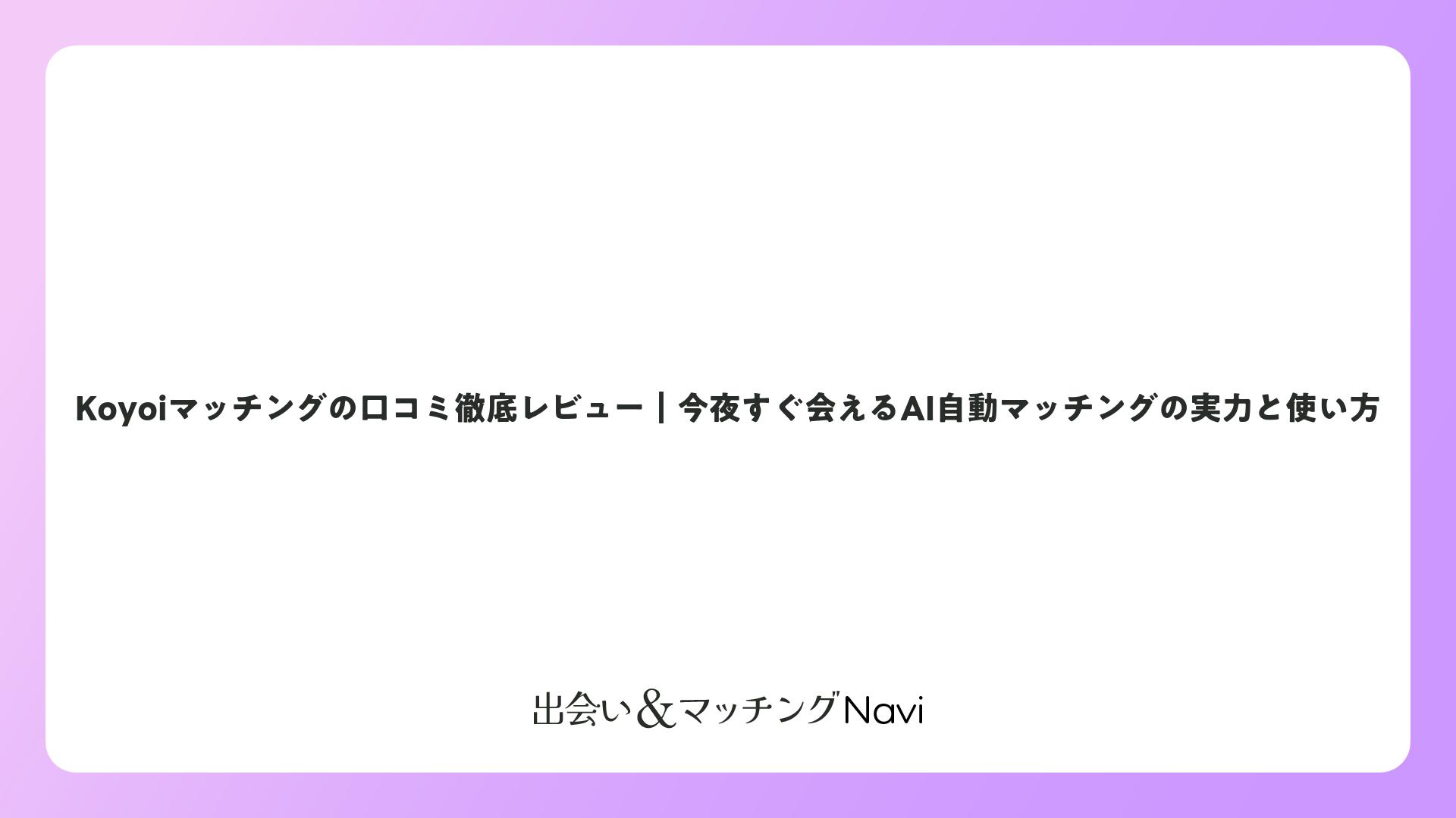 Koyoiマッチングの口コミ徹底レビュー|今夜すぐ会えるAI自動マッチングの実力と使い方をまとめました