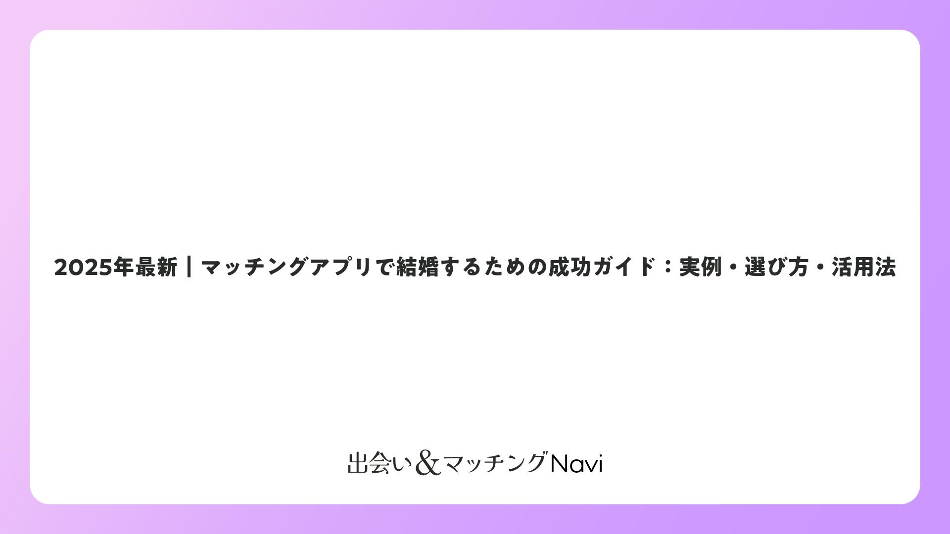 2025年最新|マッチングアプリで結婚するための成功ガイド:実例・選び方・活用法をまとめました