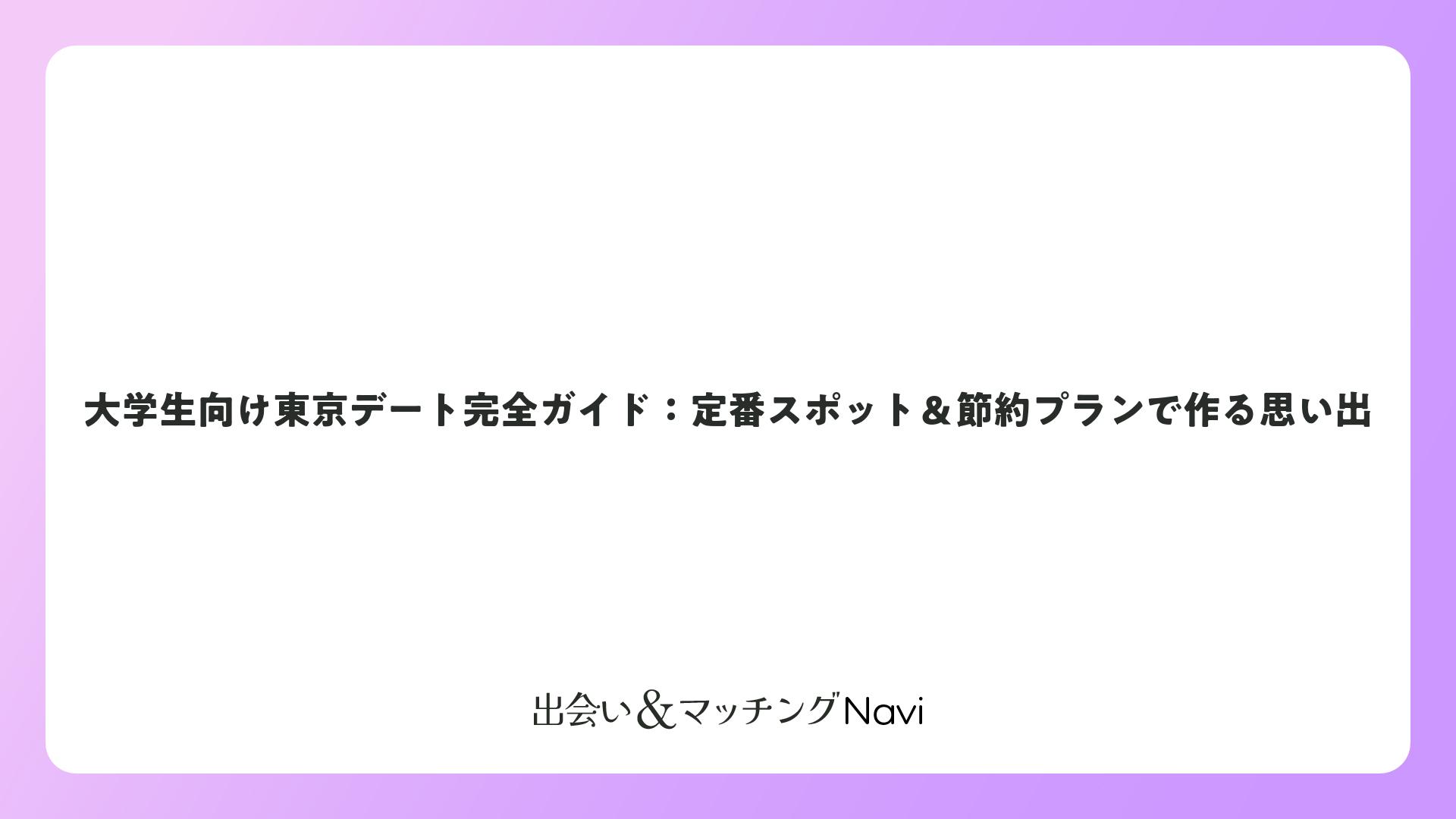 スカイツリーやお台場、水族館、公園など、アクセス良好で学生割引豊富な場所を活用。季節や天候に合わせたプランで、二人だけの特別な思い出を作りましょう。東京の魅力を存分に味わい、愛を深めてください。