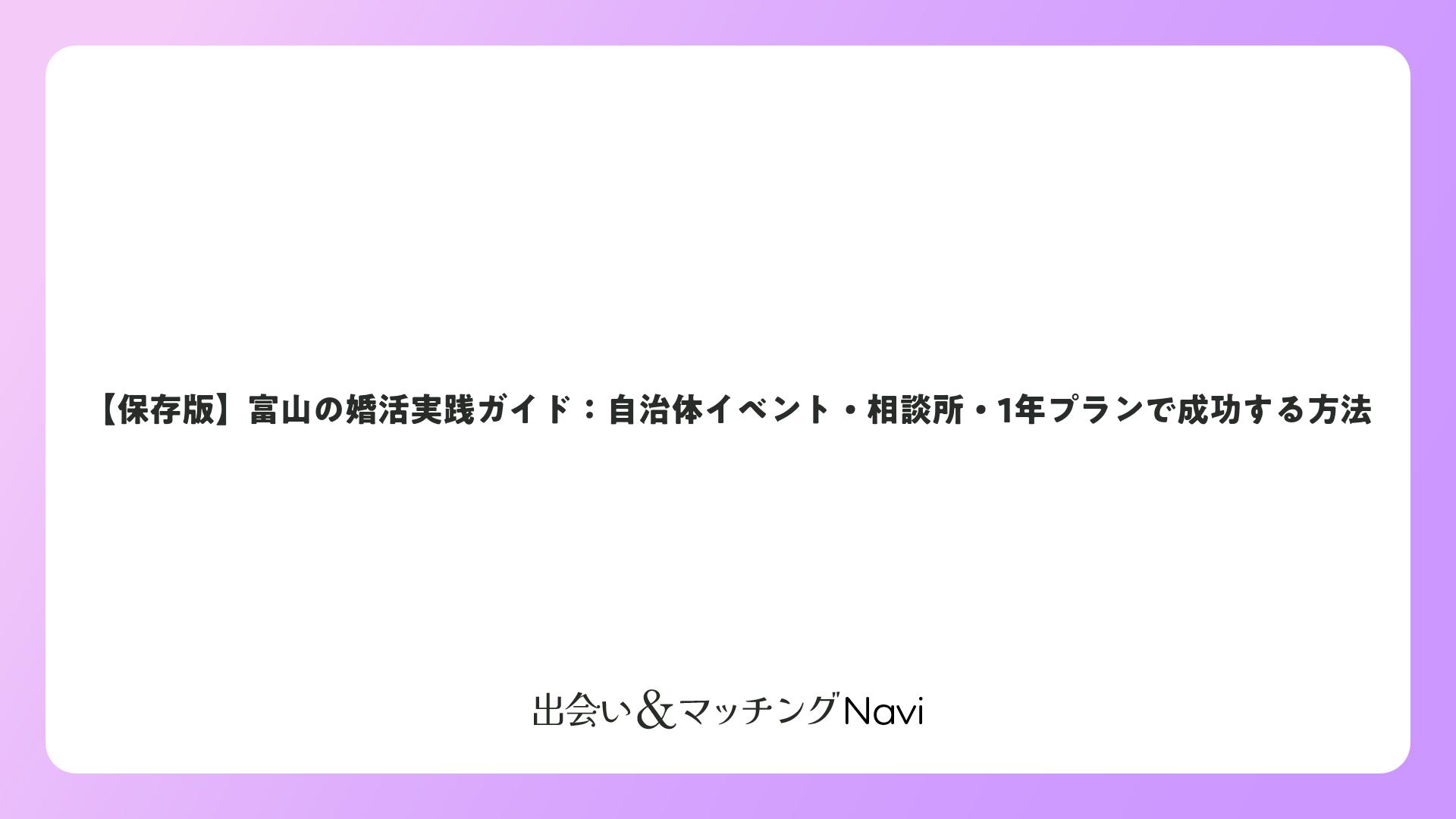 【保存版】富山の婚活実践ガイド:自治体イベント・相談所・1年プランで成功する方法をまとめました