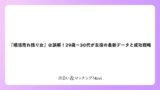 再婚志望者向けに、周囲宣言の重要性も。遊び対象を避け、本気のパートナーを引き寄せます。女友達の繋ぎ役活用も、ネットワークの広がりを示す好例です。