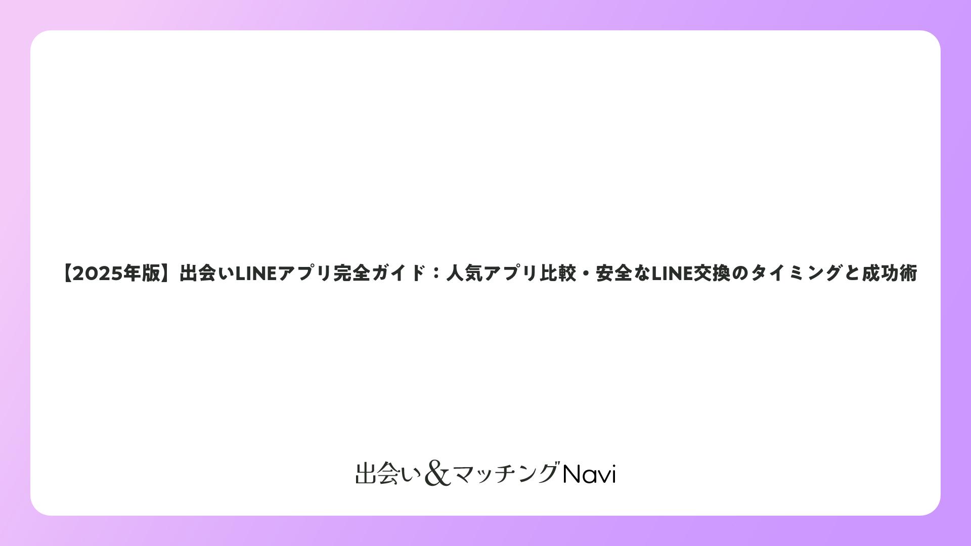 【2025年版】出会いLINEアプリ完全ガイド:人気アプリ比較・安全なLINE交換のタイミングと成功術をまとめました