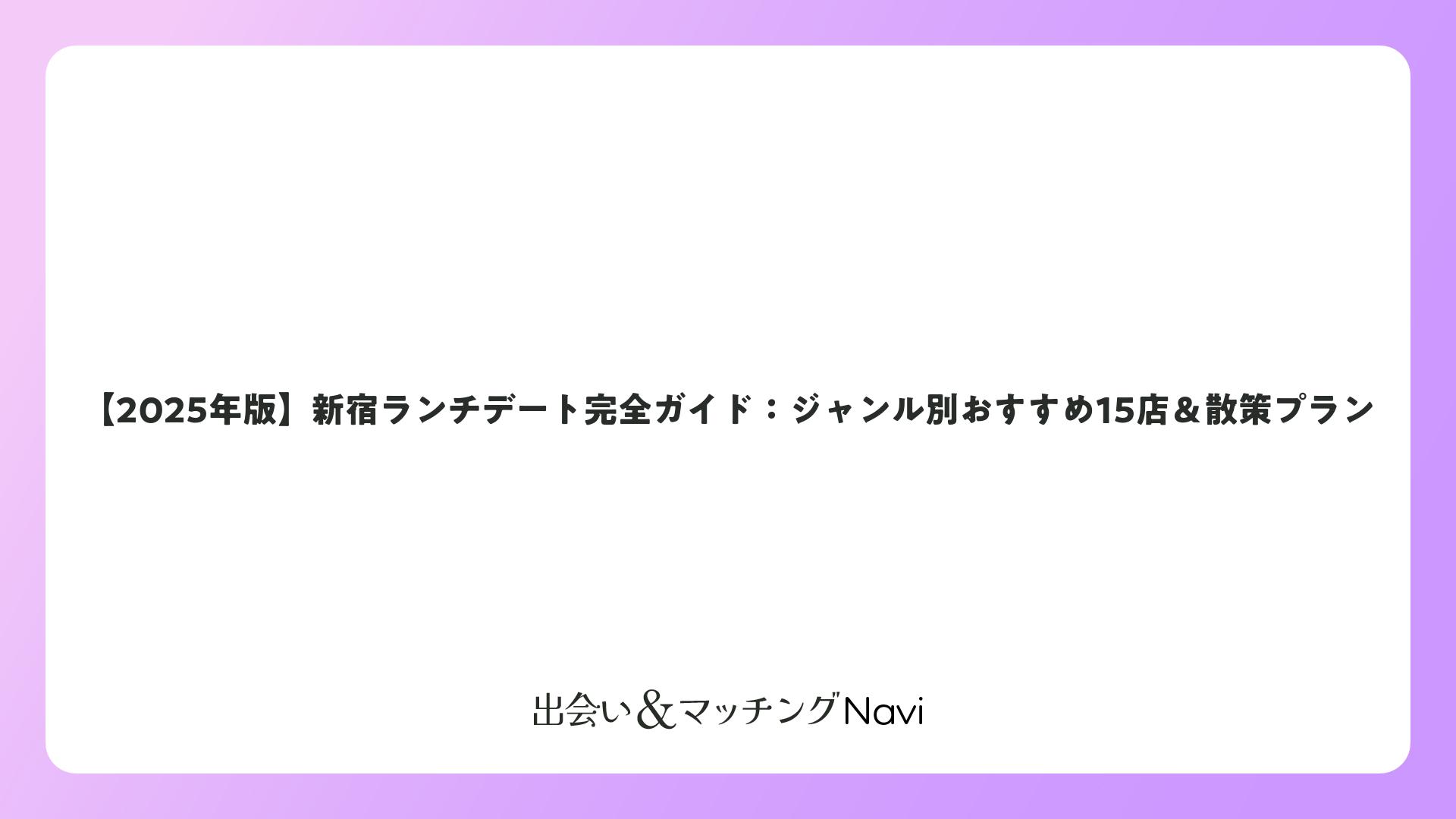 【2025年版】新宿ランチデート完全ガイド:ジャンル別おすすめ15店&散策プランをまとめました