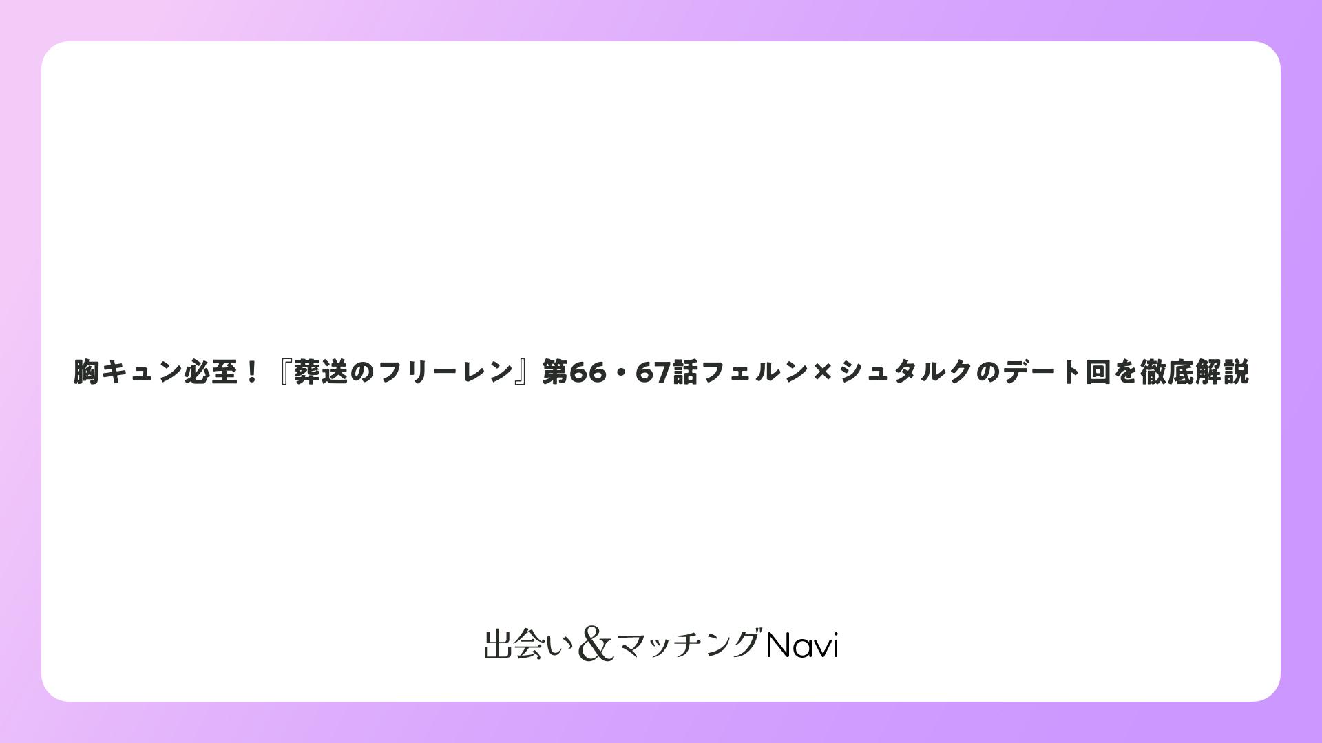 胸キュン必至!『葬送のフリーレン』第66・67話フェルン×シュタルクのデート回を徹底解説をまとめました