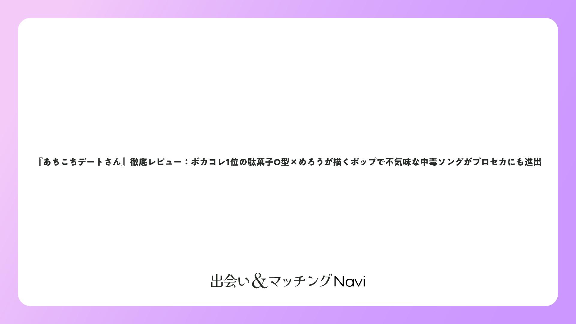 『あちこちデートさん』は、ボカロシーンの新星として輝く楽曲で、ポップさと不気味さの融合が無限の魅力を生み出しています。ボカコレ1位、プロセカ収録、メディア露出など、多方面で成功を収め、ファンを増やし続けています。駄菓子O型氏とめろうのタッグがもたらすこの名曲を、ぜひ体感してください。