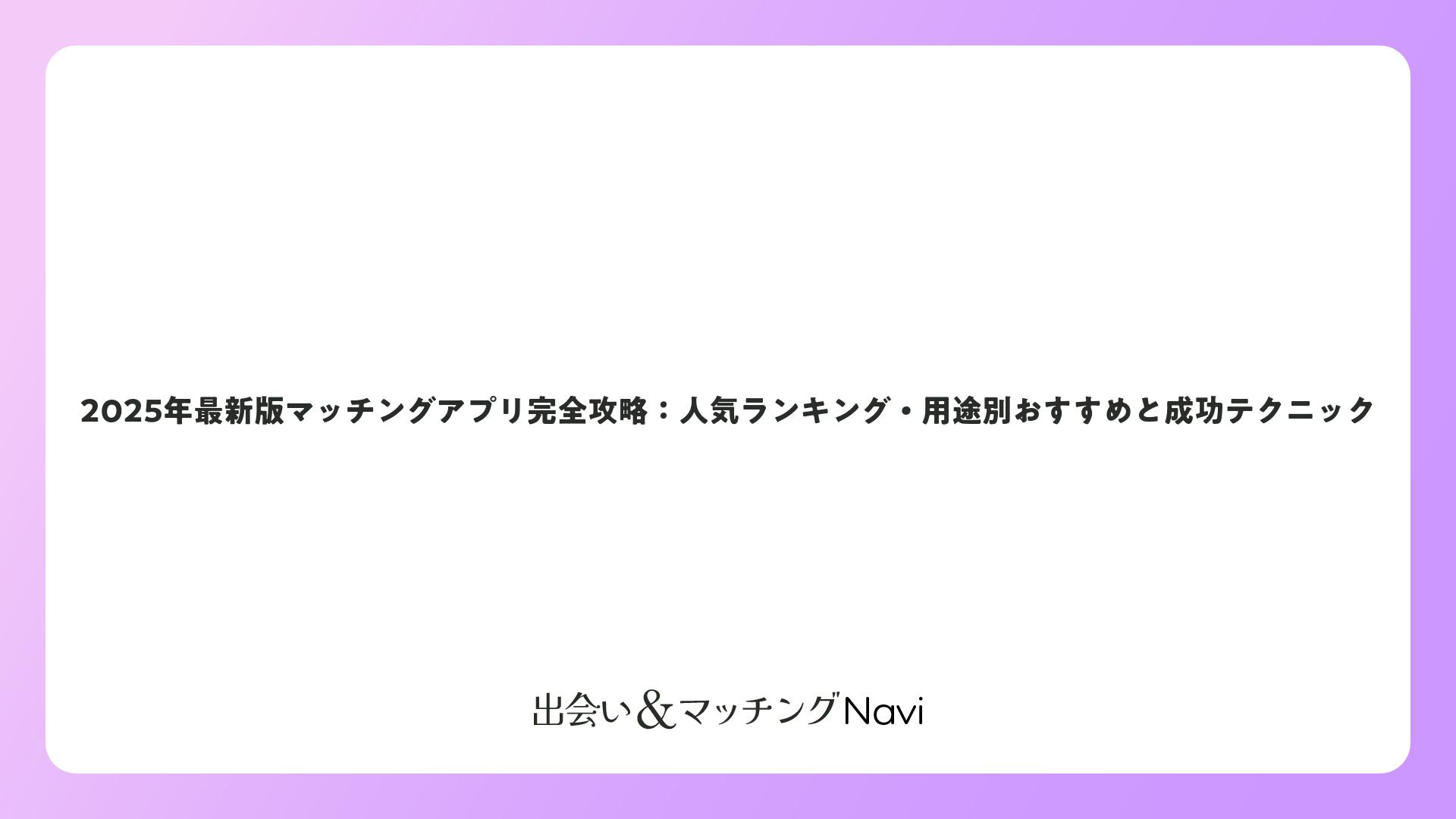 2025年最新版マッチングアプリ完全攻略:人気ランキング・用途別おすすめと成功テクニックをまとめました