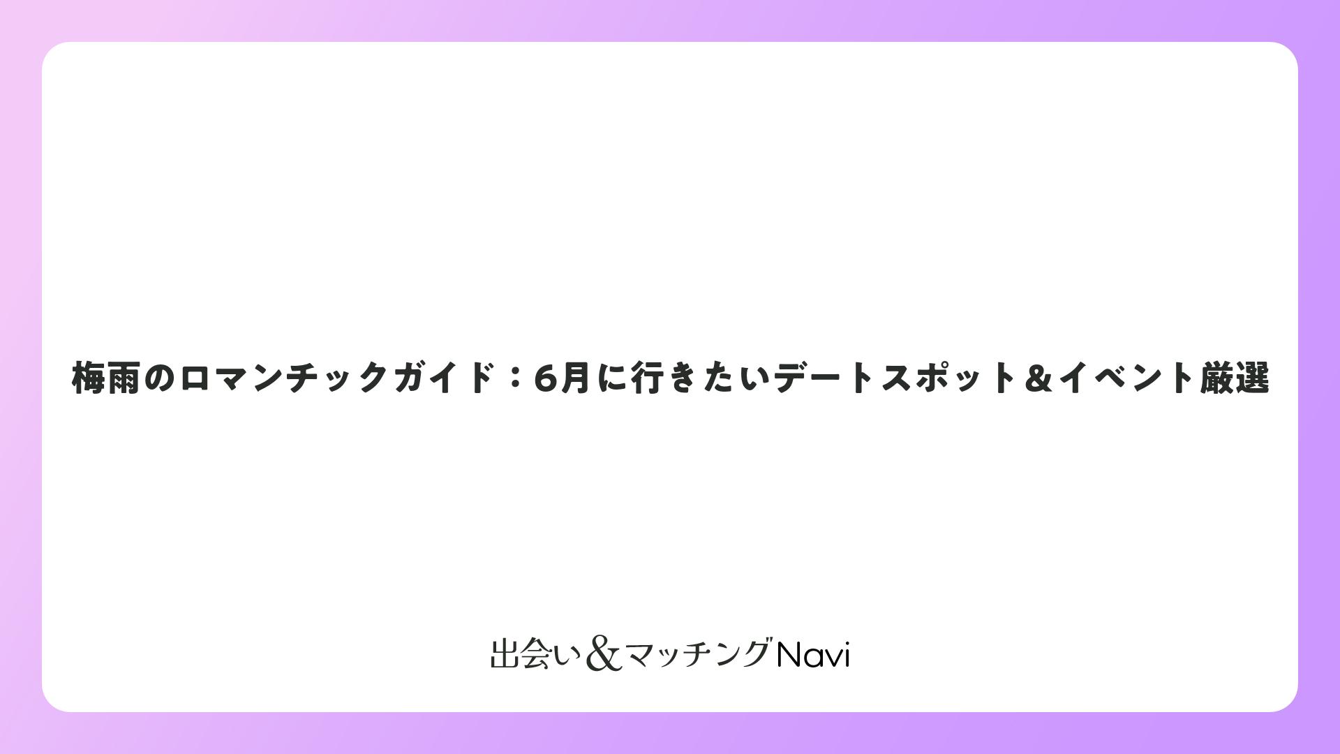 梅雨のロマンスを満喫し、初夏の風を感じるデートを。花の名所巡りから美食イベントまで、選りすぐりのスポットで愛を育んでください。きっと忘れられない6月になりますよ。