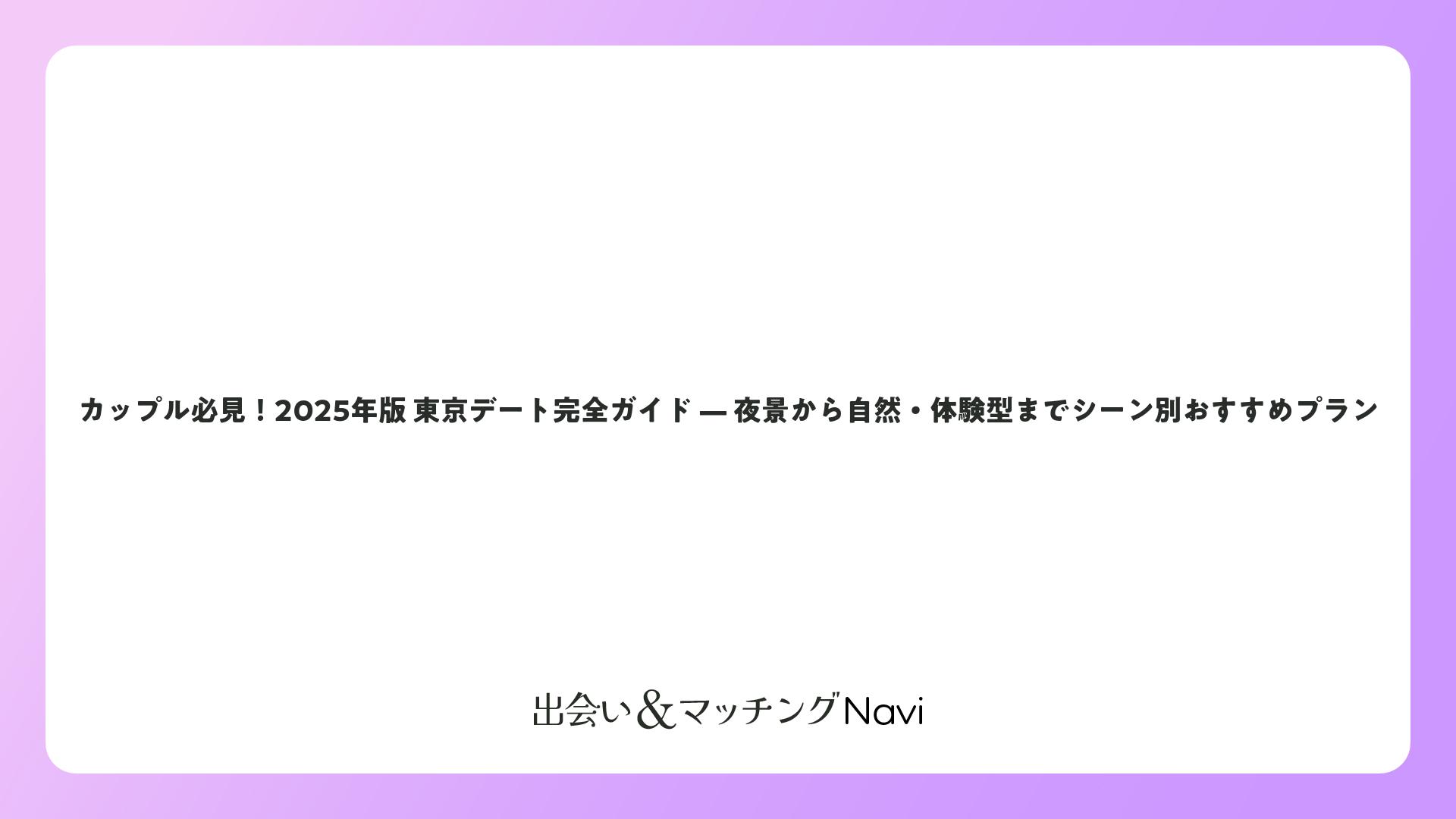 カップル必見!2025年版 東京デート完全ガイド — 夜景から自然・体験型までシーン別おすすめプランをまとめました