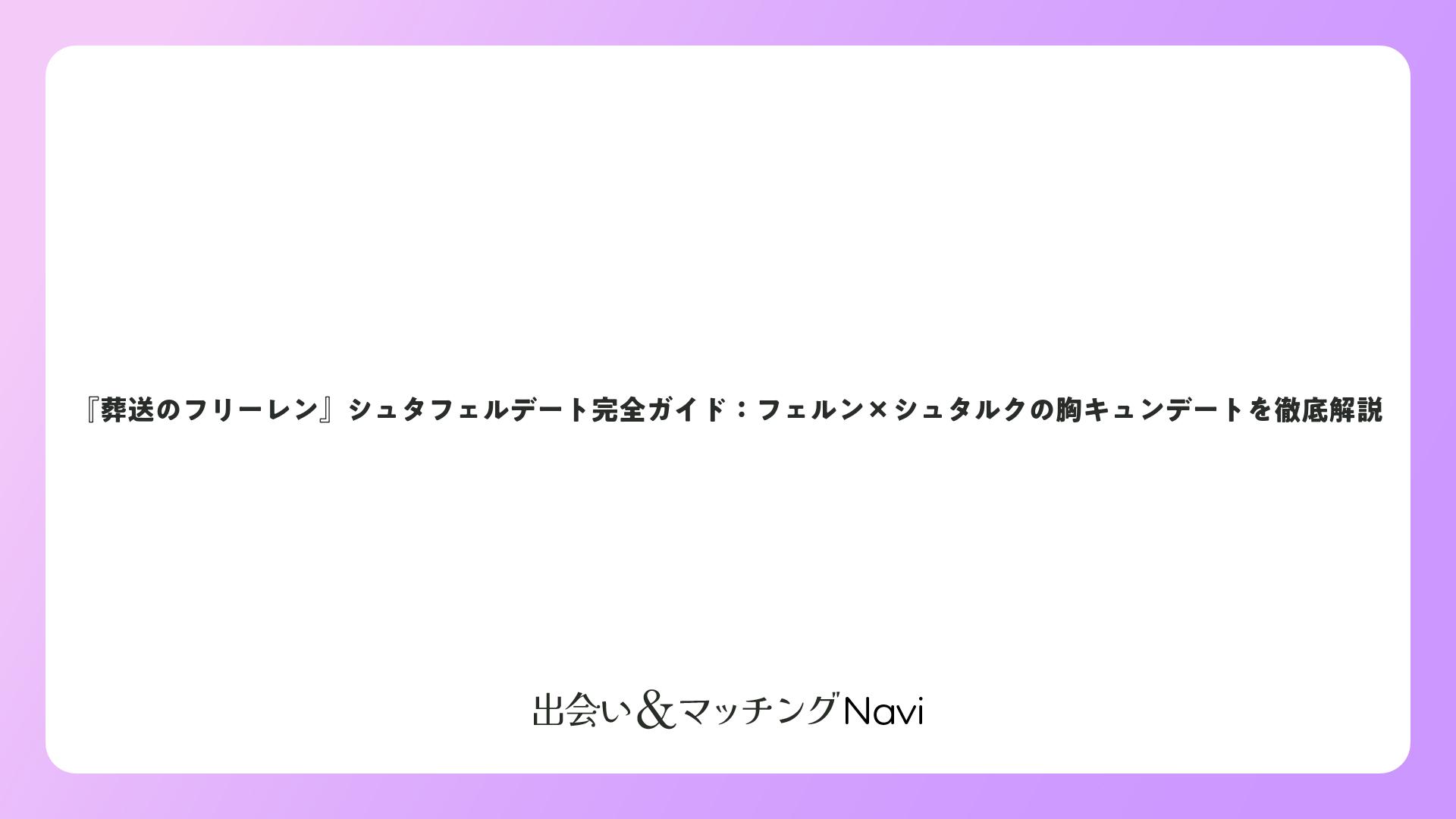 『葬送のフリーレン』シュタフェルデート完全ガイド:フェルン×シュタルクの胸キュンデートを徹底解説をまとめました