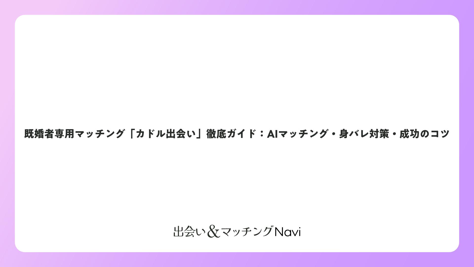 既婚者専用マッチング「カドル出会い」徹底ガイド:AIマッチング・身バレ対策・成功のコツをまとめました