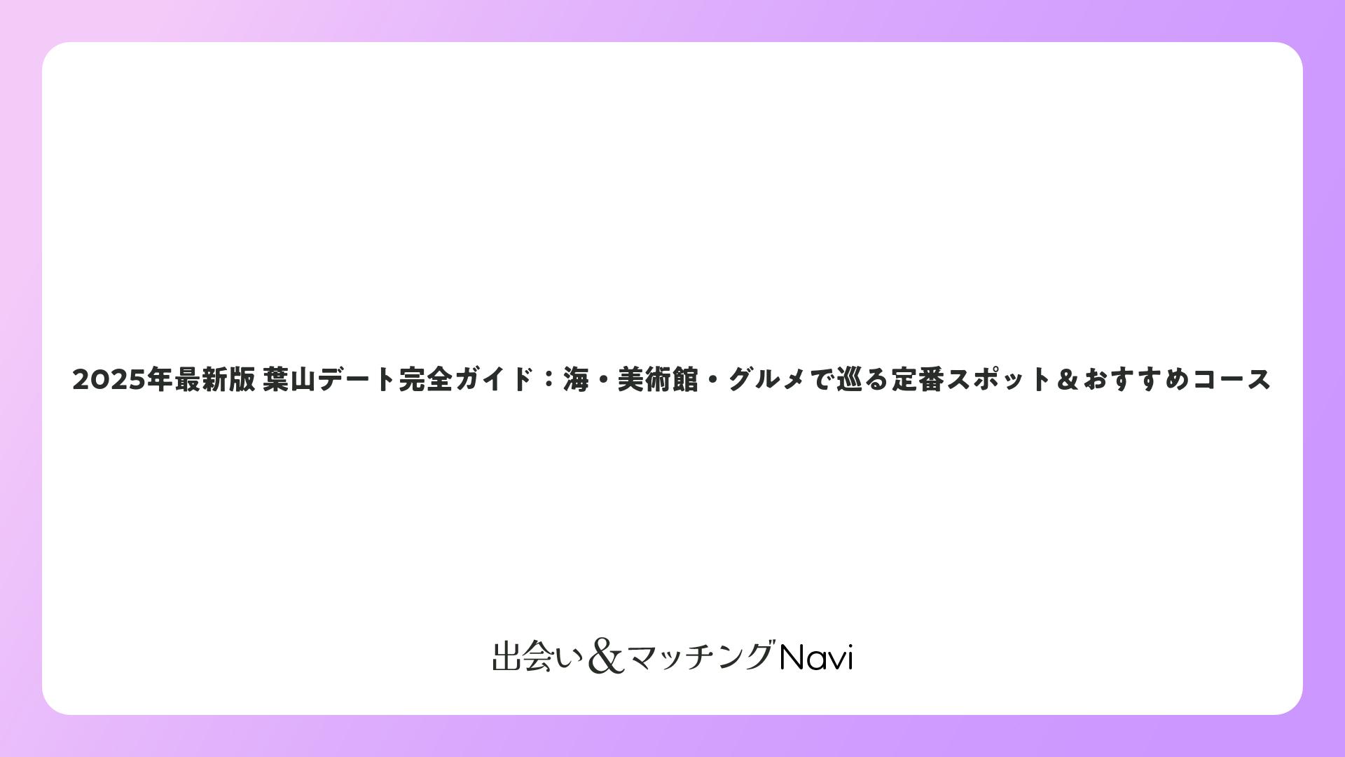 葉山は海・美術・グルメが揃う理想のデート地。定番スポットとオリジナルコースで、忘れられない一日を過ごせます。アクセスしやすく、どんな季節も楽しめるポジティブな魅力を活かしましょう。