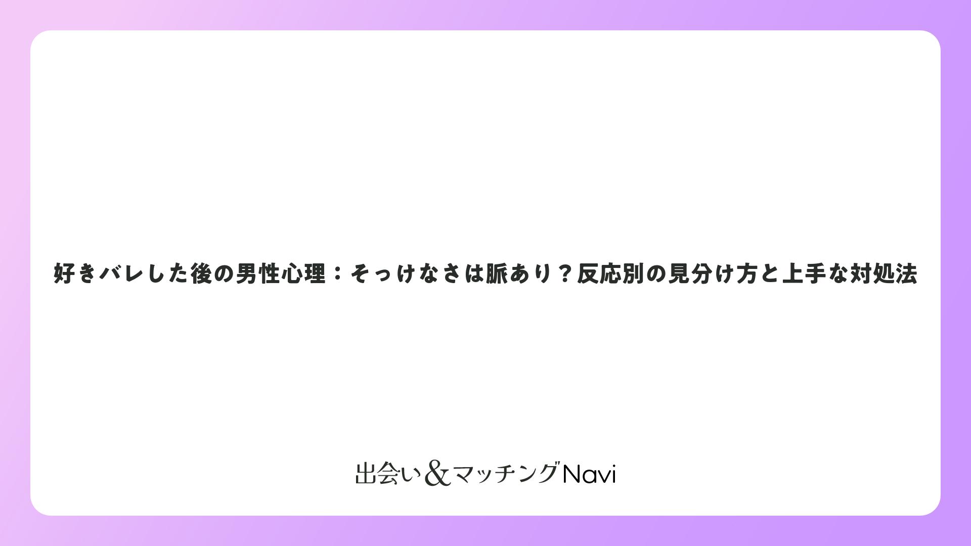 好きな人に自分の気持ちがバレてしまった瞬間、心臓が止まりそうになるようなドキドキと不安が交錯しますよね。でも、そんな好きバレした後男性心理を正しく理解すれば、関係がより良い方向に進むチャンスに変わります。この記事では、複数の視点から男性の心の動きを詳しく解説し、ポジティブな対応策をお伝えします。気まずさを乗り越えて、素敵な恋を掴みましょう!