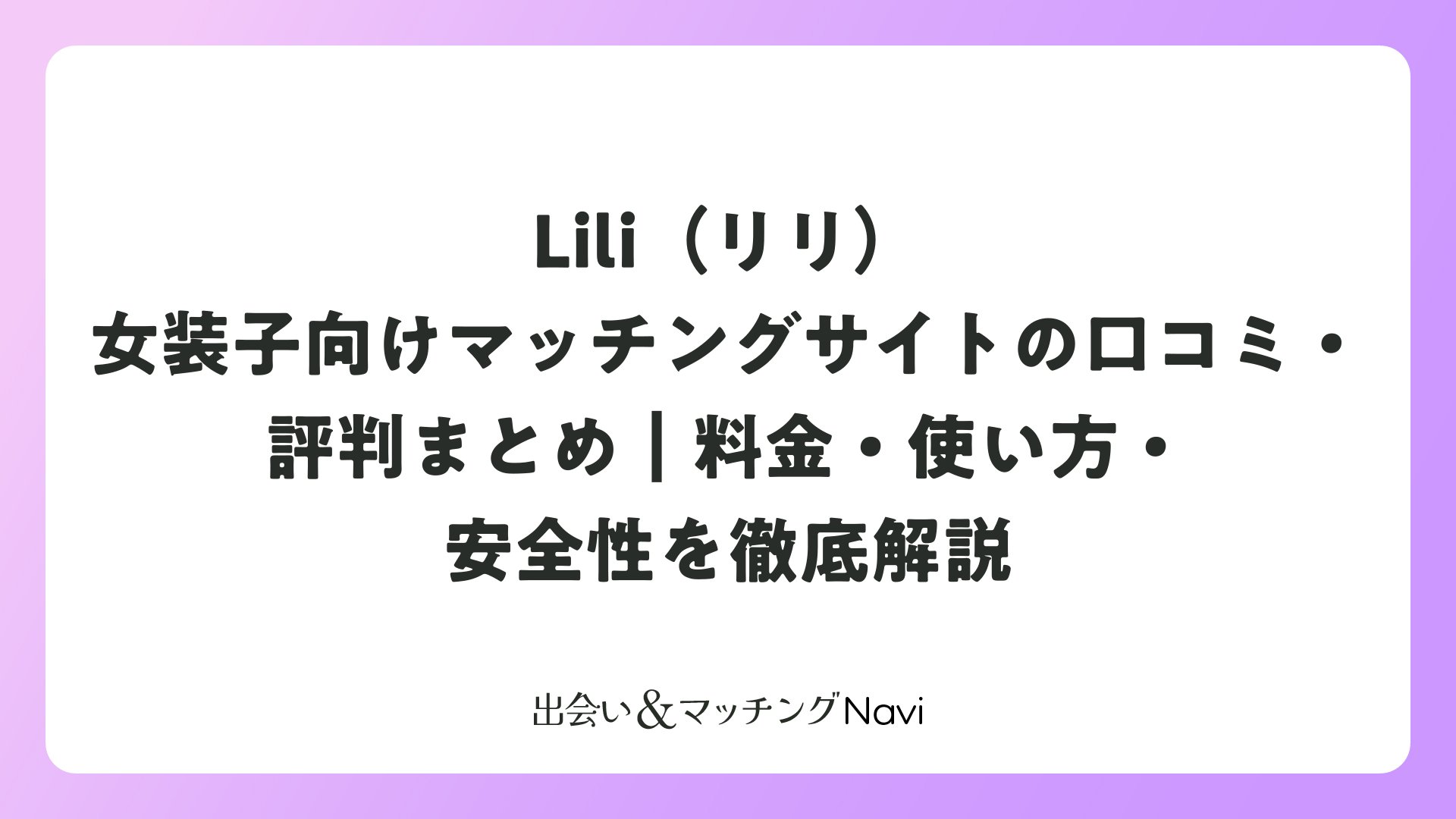 本記事では、Liliの特徴・料金・使い方・口コミ評判・安全性を網羅的に解説します。登録前に知っておきたいポイントをまとめましたので、ぜひ参考にしてください。