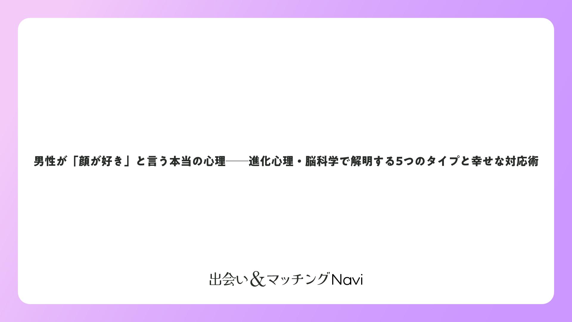 男性が「顔が好き」と言う本当の心理──進化心理・脳科学で解明する5つのタイプと幸せな対応術をまとめました
