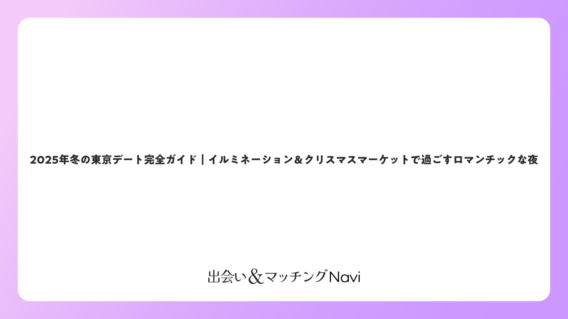 2025年冬の東京デート完全ガイド|イルミネーション&クリスマスマーケットで過ごすロマンチックな夜をまとめました