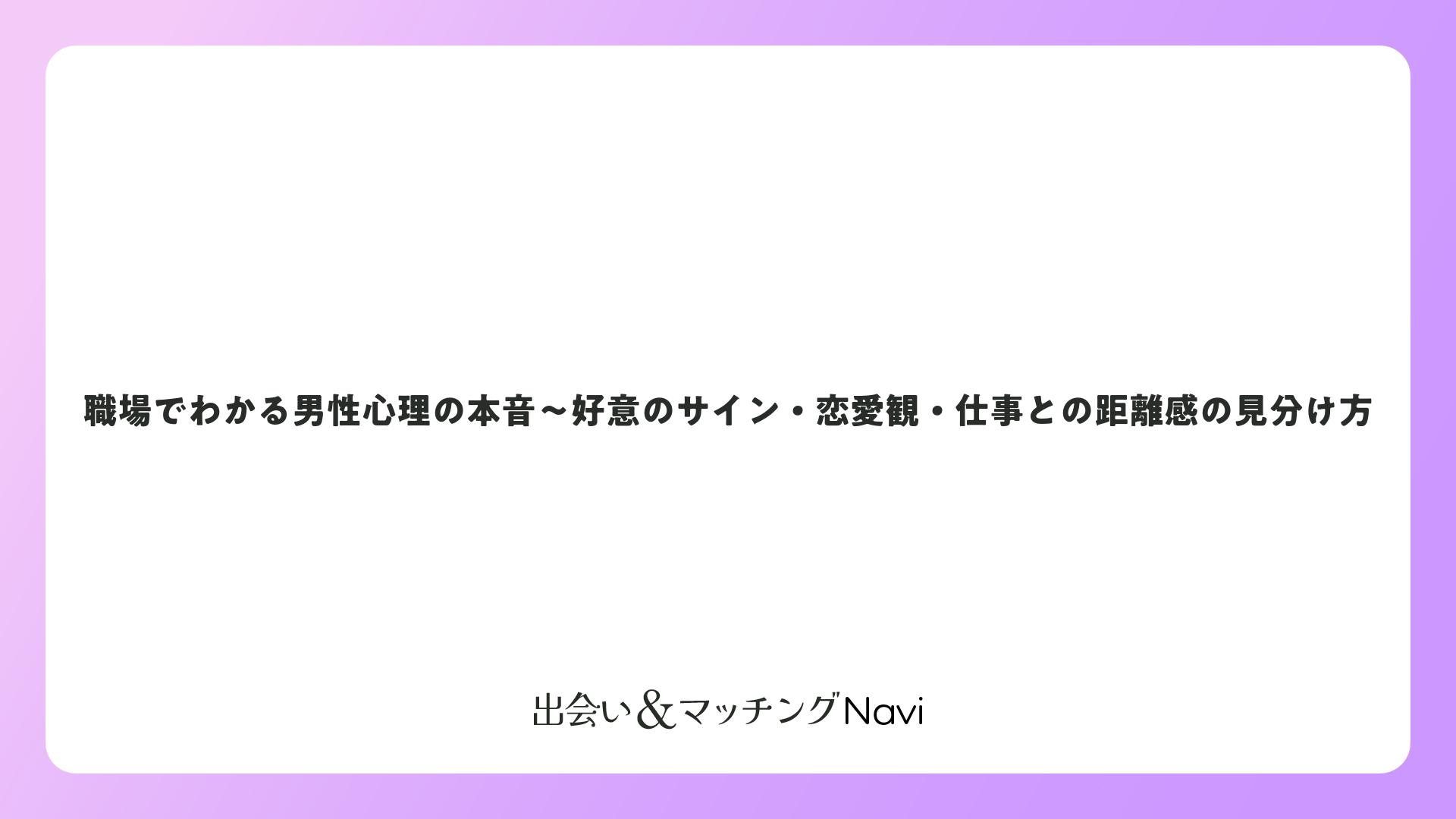 職場でわかる男性心理の本音〜好意のサイン・恋愛観・仕事との距離感の見分け方をまとめました