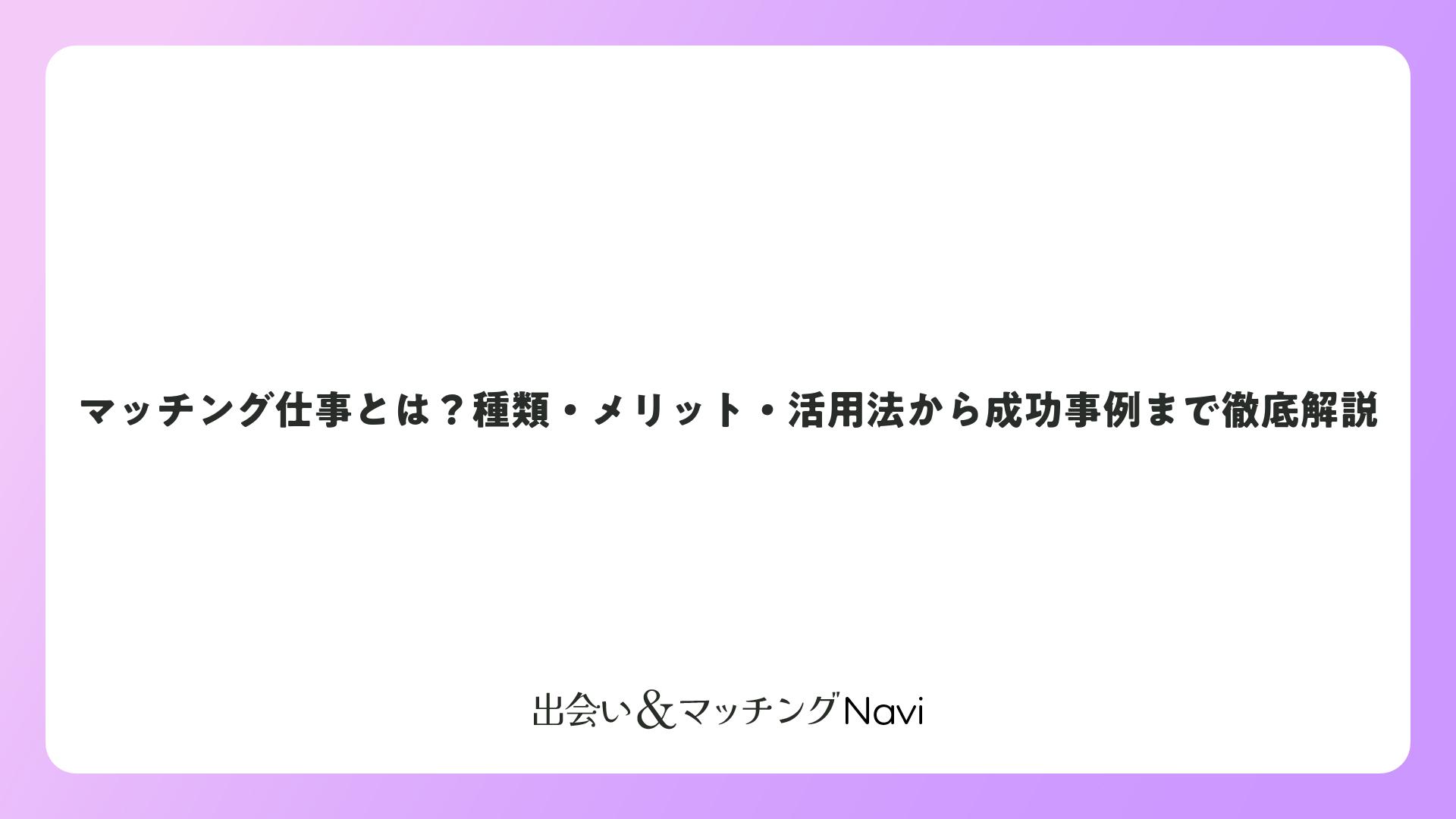 マッチング仕事とは?種類・メリット・活用法から成功事例まで徹底解説をまとめました