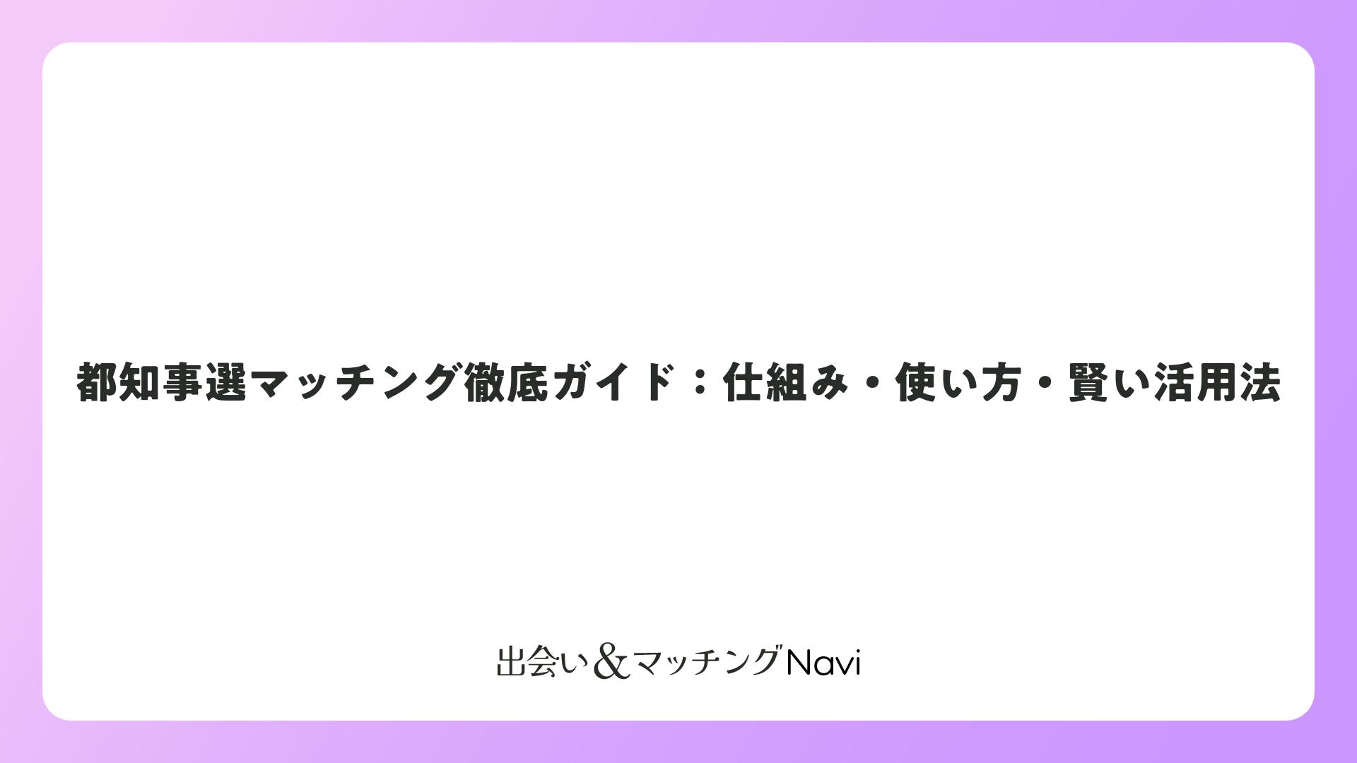 都知事選マッチング徹底ガイド:仕組み・使い方・賢い活用法をまとめました