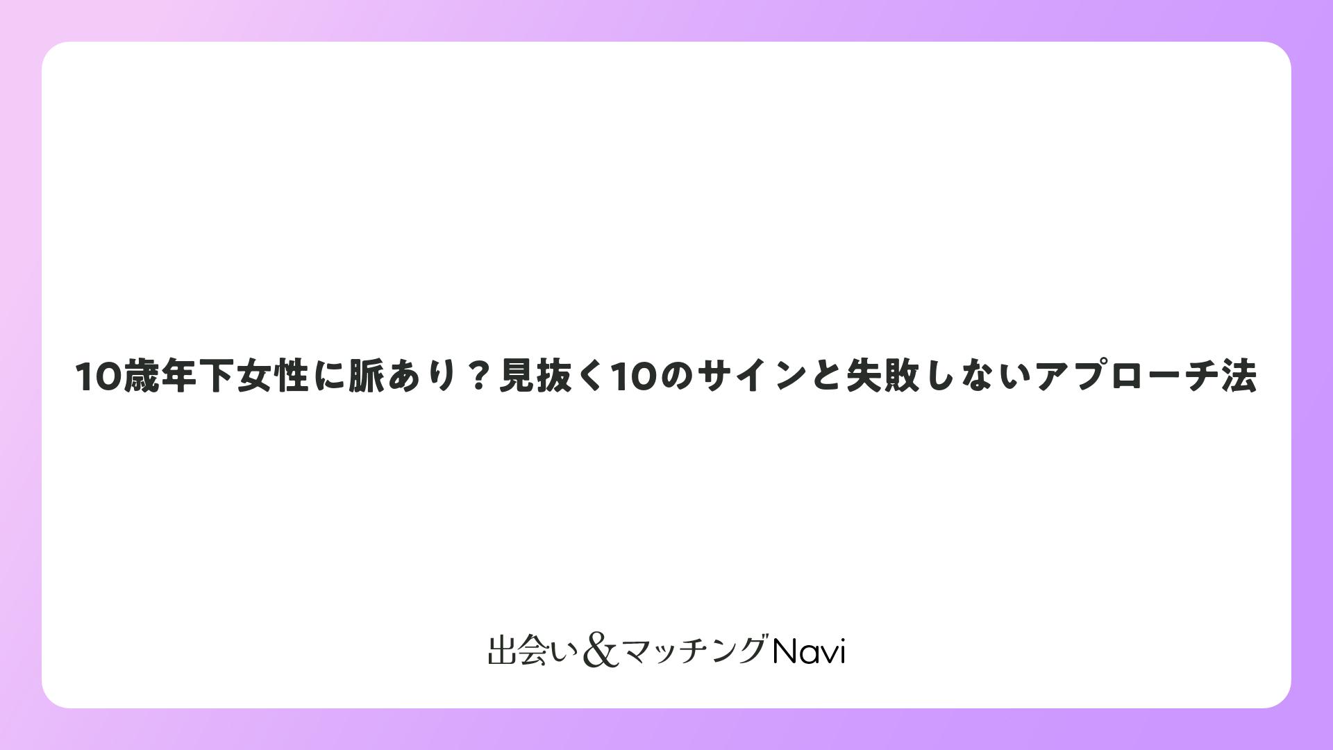 10歳年下の女性から好意のサインを感じ取ることは、年齢差のある恋愛を進展させる上でとても重要です。この記事では、そんな10歳年下女性の脈ありサインを詳しく解説し、ポジティブなアプローチ方法を紹介します。年齢差を活かした魅力的な関係を築くためのヒントが満載です。