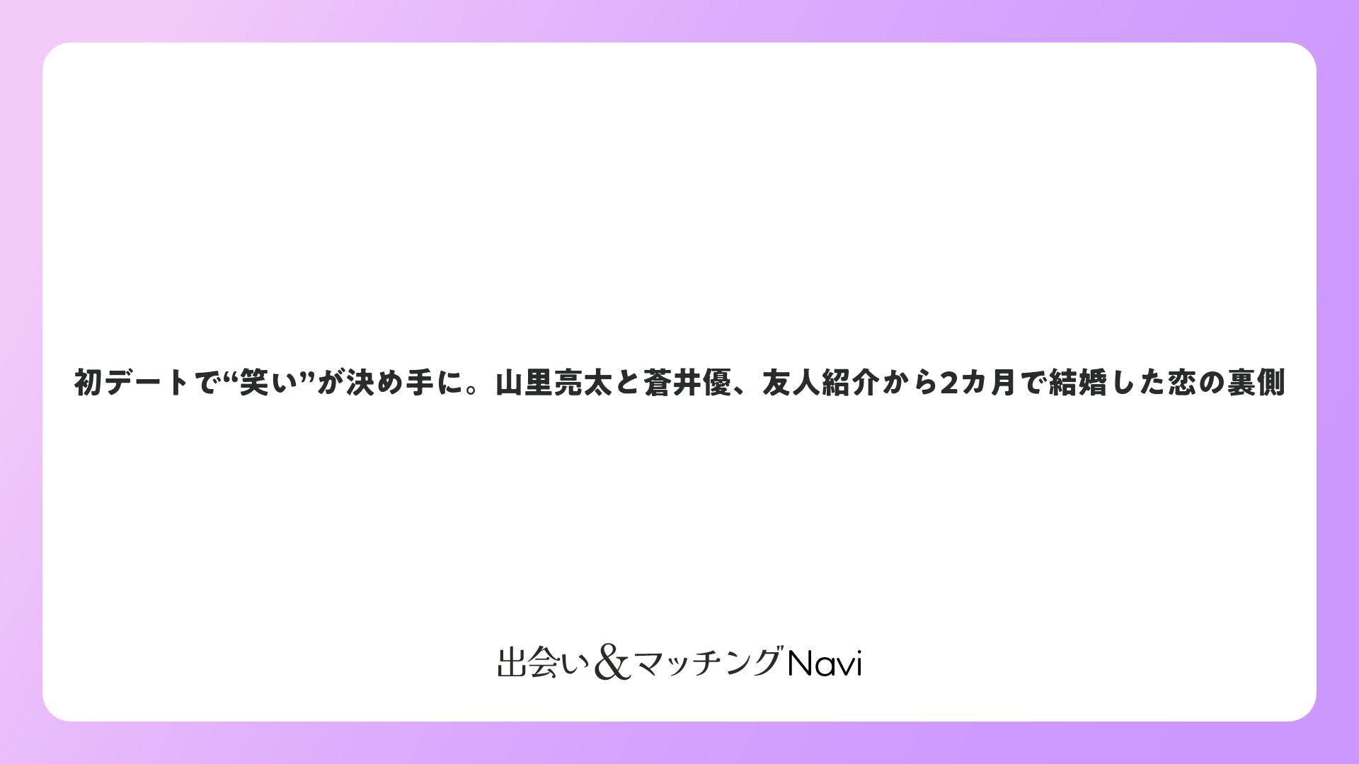 初デートで“笑い”が決め手に。山里亮太と蒼井優、友人紹介から2カ月で結婚した恋の裏側をまとめました