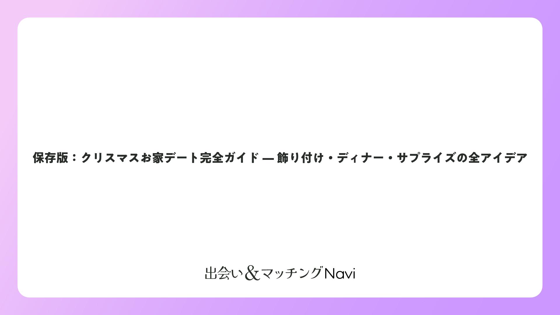 保存版:クリスマスお家デート完全ガイド — 飾り付け・ディナー・サプライズの全アイデアをまとめました