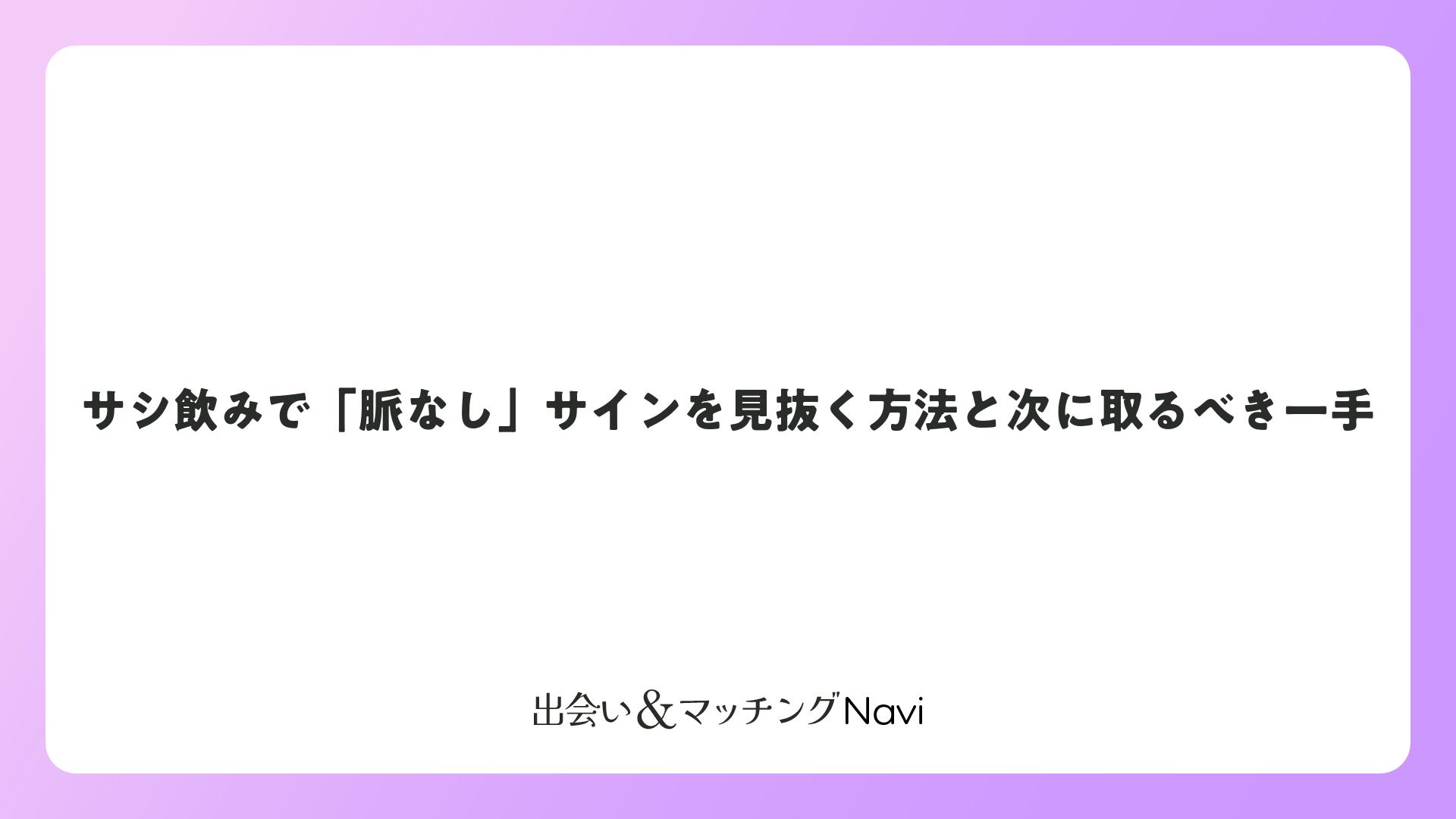 サシ飲み脈なしは、関係の途中段階を示すサイン。脈あり脈なしの見分け方を活かし、次の一手を打てばチャンス拡大です。ポジティブに楽しむ姿勢が成功の鍵となります。