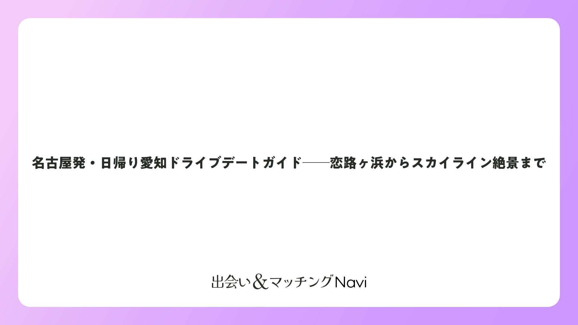名古屋発・日帰り愛知ドライブデートガイド──恋路ヶ浜からスカイライン絶景までをまとめました