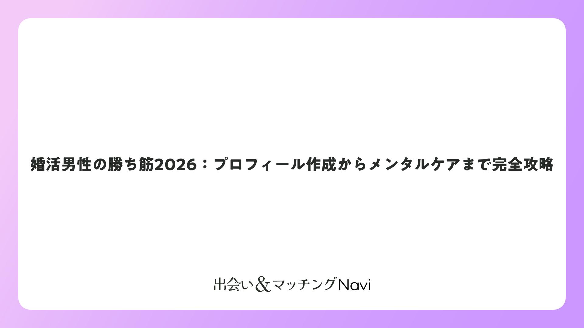 婚活男性の勝ち筋2026:プロフィール作成からメンタルケアまで完全攻略をまとめました