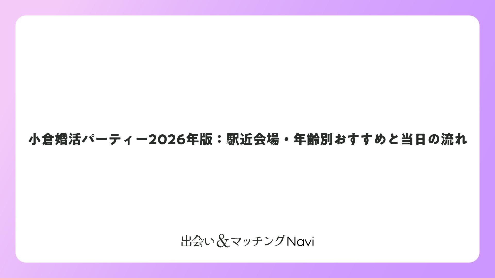 小倉婚活パーティー2026年版:駅近会場・年齢別おすすめと当日の流れをまとめました