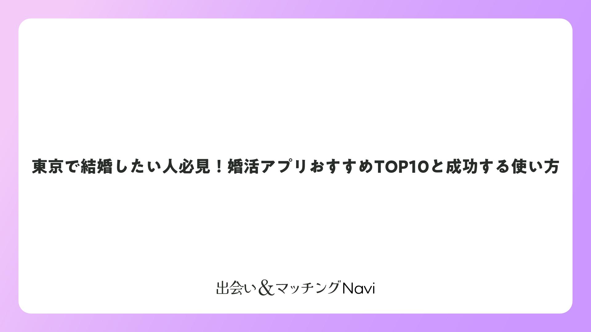 東京で結婚したい人必見!婚活アプリおすすめTOP10と成功する使い方をまとめました