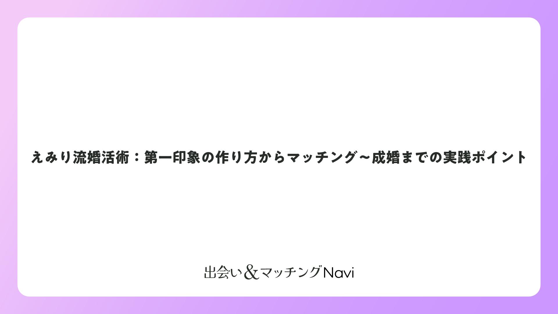 えみり流婚活術:第一印象の作り方からマッチング〜成婚までの実践ポイントをまとめました