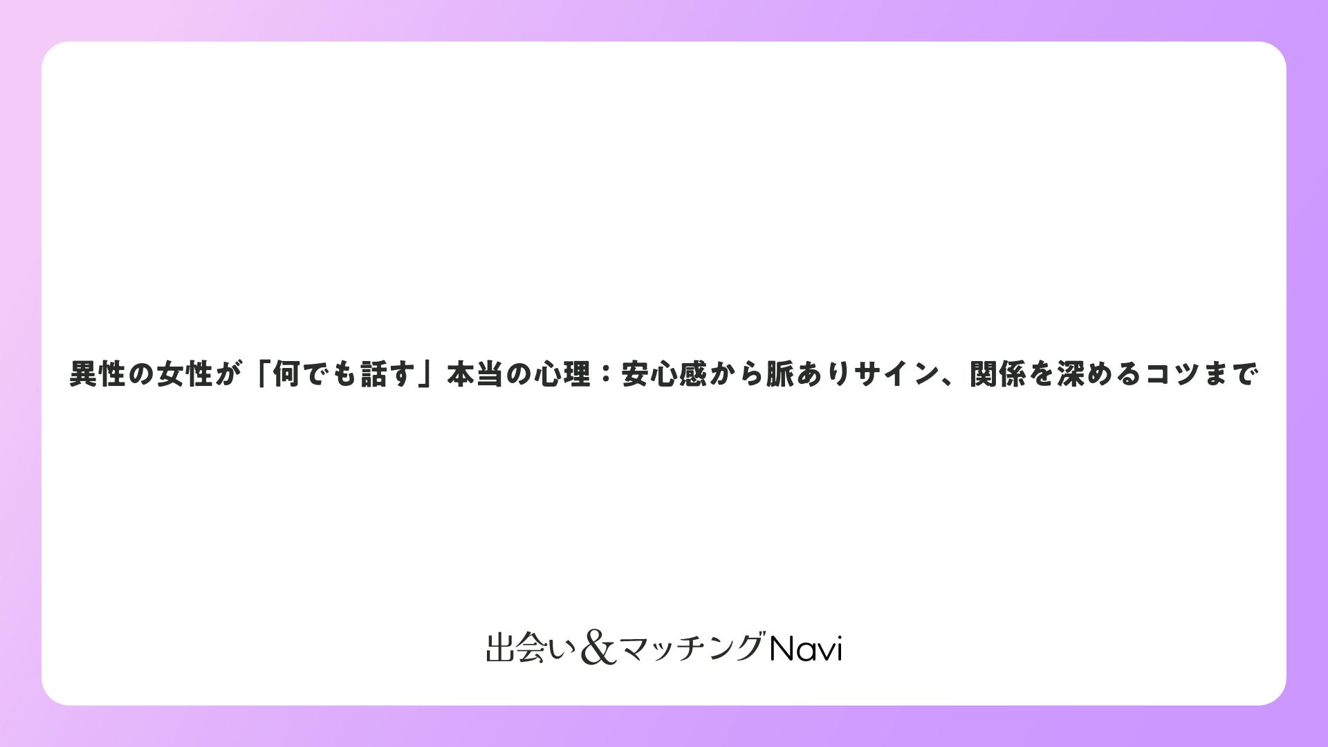 異性の女性が「何でも話す」本当の心理:安心感から脈ありサイン、関係を深めるコツまでをまとめました