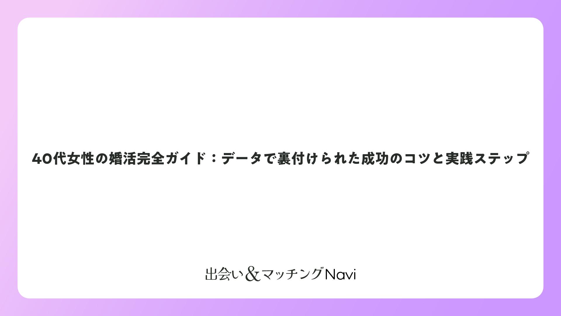 40代女性の婚活完全ガイド:データで裏付けられた成功のコツと実践ステップをまとめました