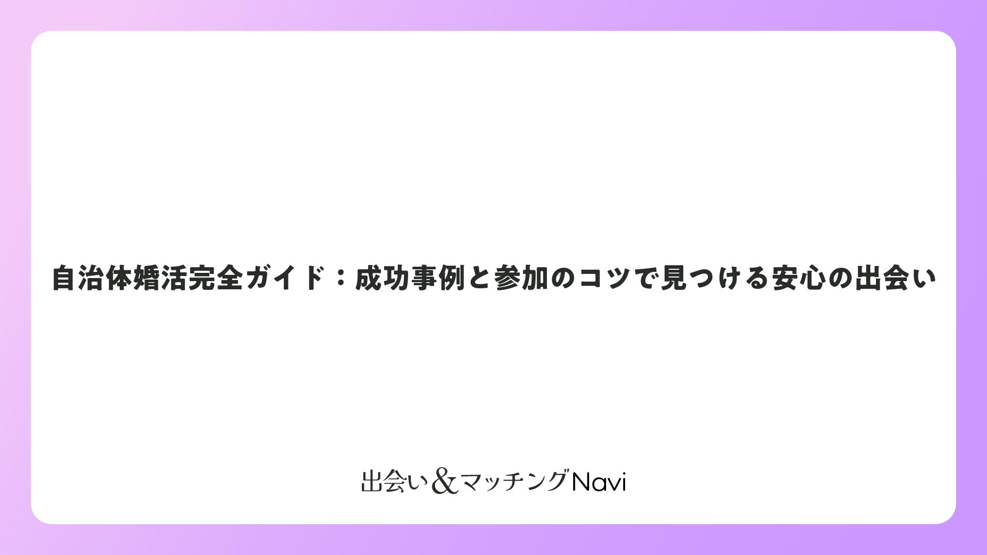 自治体婚活完全ガイド:成功事例と参加のコツで見つける安心の出会いをまとめました
