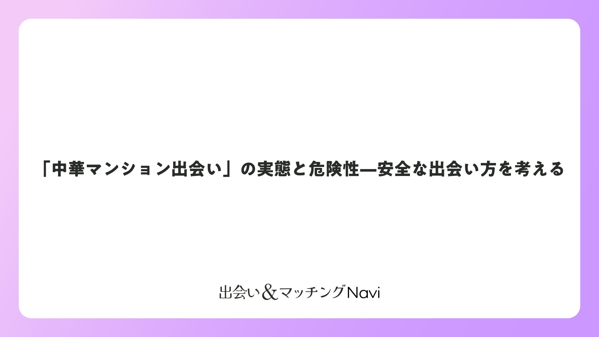 「中華マンション出会い」の実態と危険性—安全な出会い方を考える