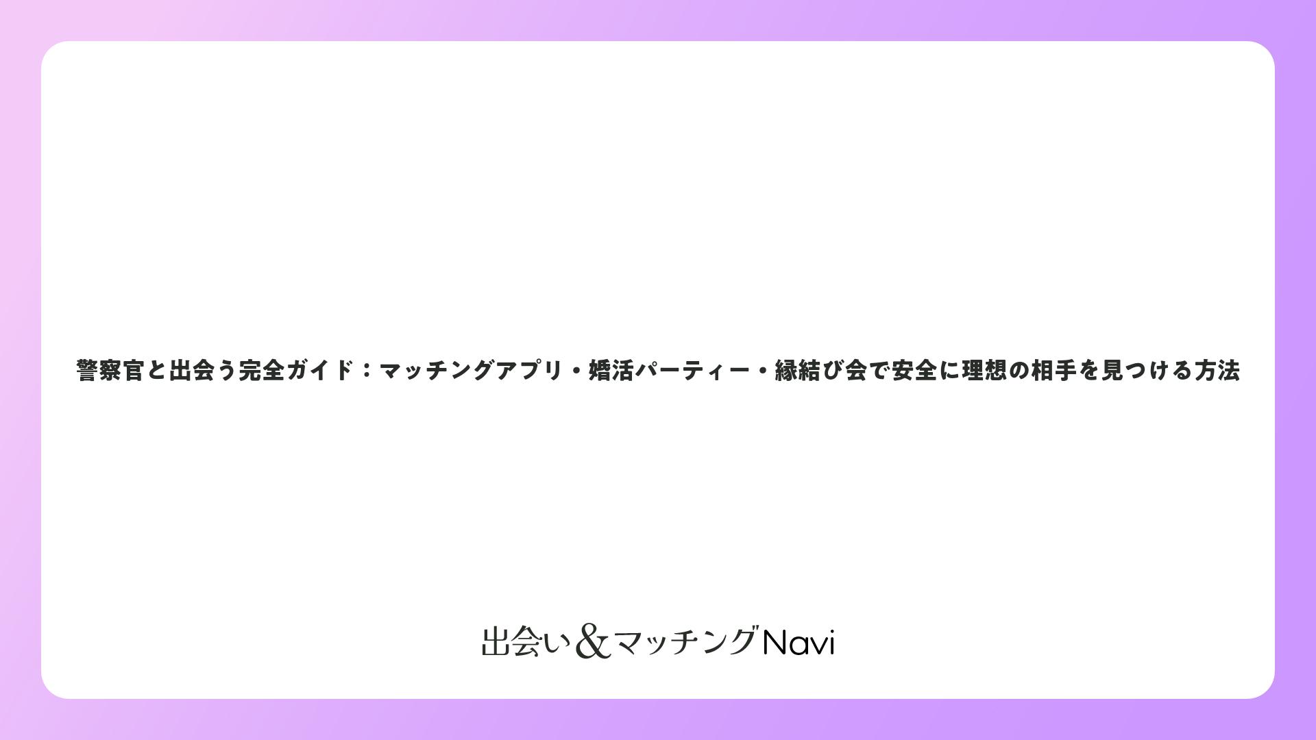 警察官と出会う完全ガイド:マッチングアプリ・婚活パーティー・縁結び会で安全に理想の相手を見つける方法をまとめました