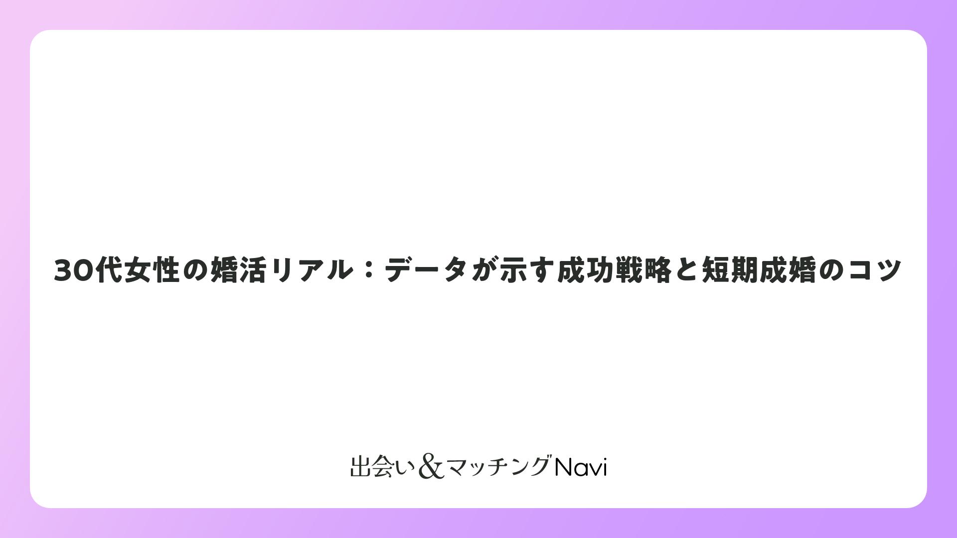 30代女性の婚活リアル:データが示す成功戦略と短期成婚のコツをまとめました