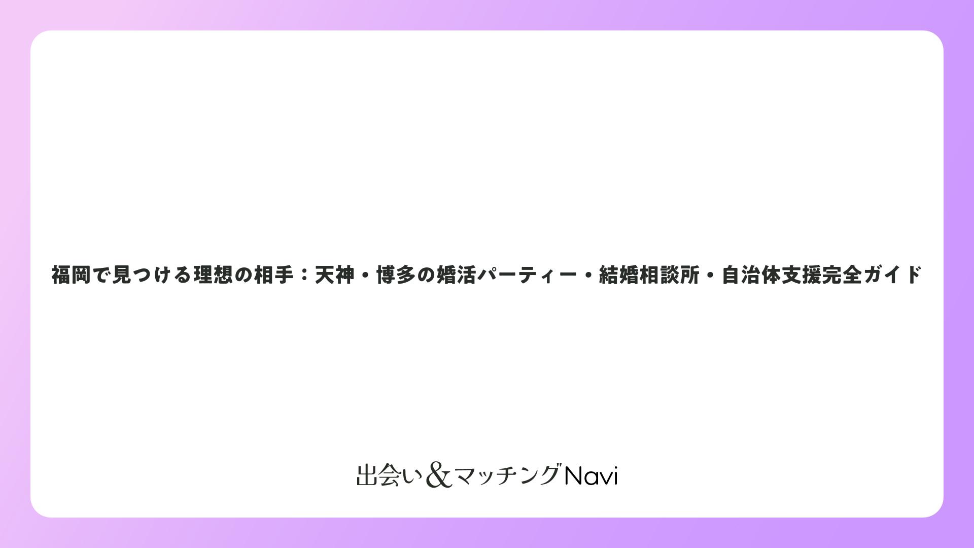 福岡で見つける理想の相手:天神・博多の婚活パーティー・結婚相談所・自治体支援完全ガイドをまとめました