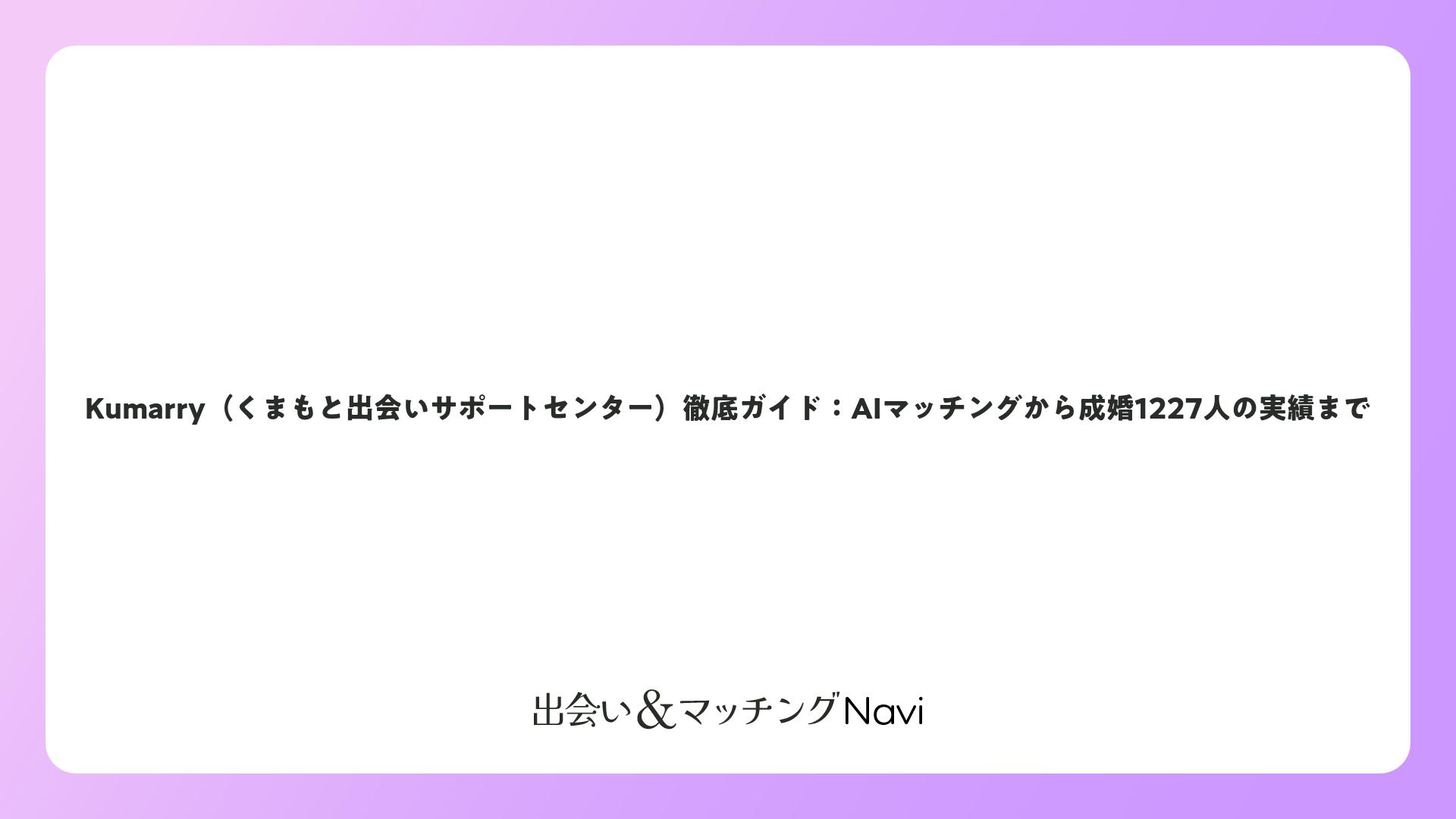 Kumarry(くまもと出会いサポートセンター)徹底ガイド:AIマッチングから成婚1227人の実績までをまとめました