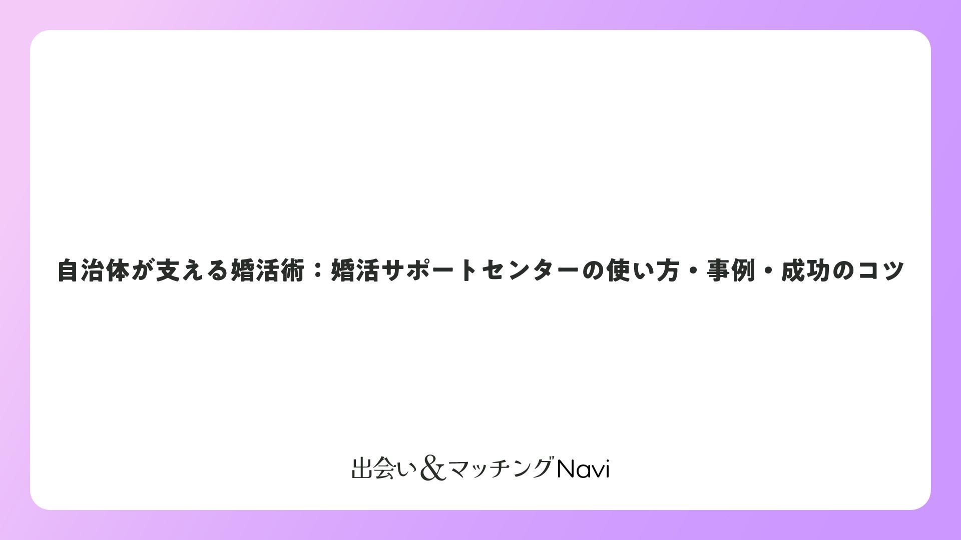 自治体が支える婚活術:婚活サポートセンターの使い方・事例・成功のコツをまとめました