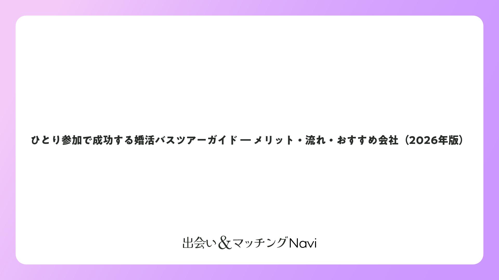 ひとり参加で成功する婚活バスツアーガイド ― メリット・流れ・おすすめ会社(2026年版)をまとめました