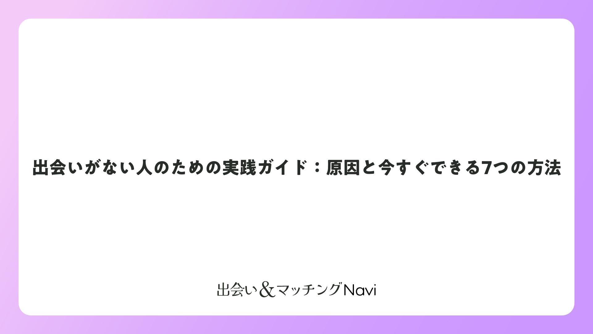 出会いがない人のための実践ガイド:原因と今すぐできる7つの方法をまとめました