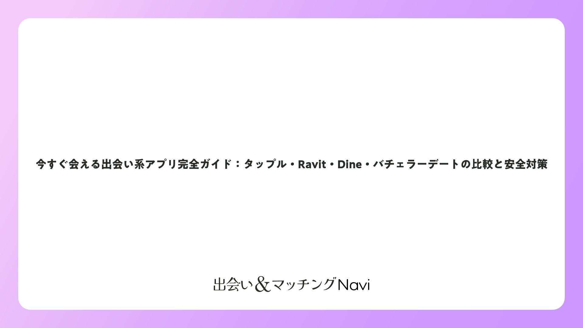 今すぐ会える出会い系アプリ完全ガイド:タップル・Ravit・Dine・バチェラーデートの比較と安全対策をまとめました