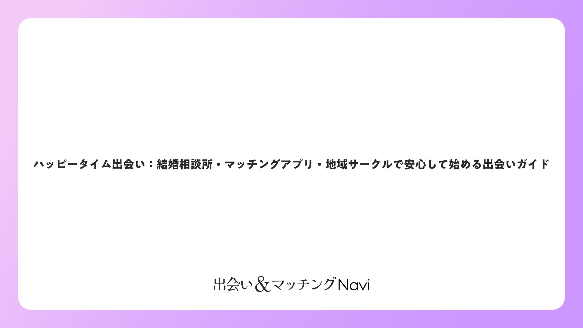 ハッピータイム出会い:結婚相談所・マッチングアプリ・地域サークルで安心して始める出会いガイドをまとめました