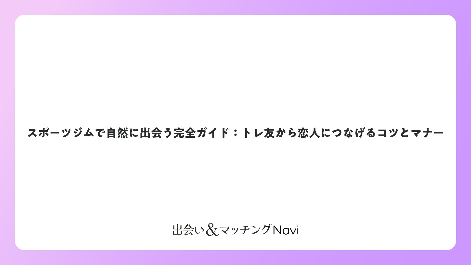 あなたも今日から、自分のペースでジムライフを楽しみつつ、自然な出会いのチャンスに目を向けてみてください。トレーニングを通じて得られる健康・自信・笑顔が、きっと素敵なご縁を引き寄せてくれるはずです。
