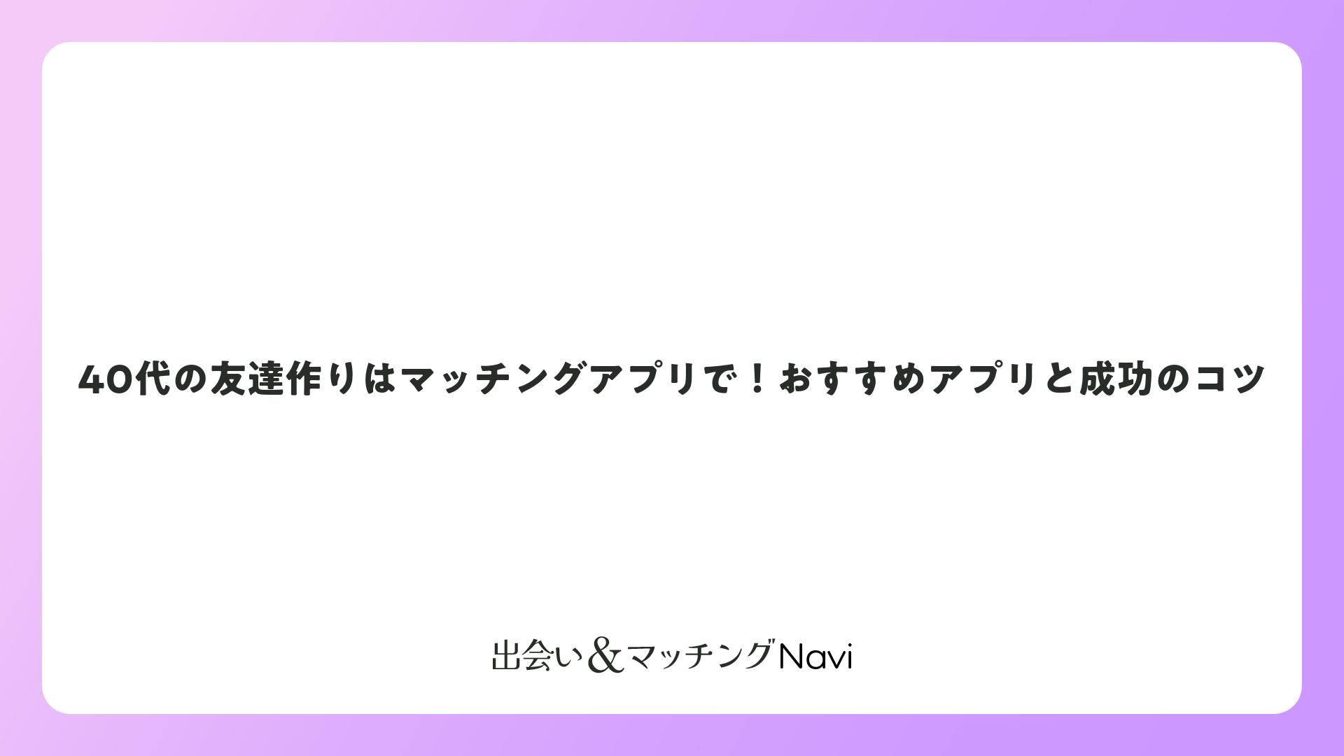 40代の友達作りはマッチングアプリで!おすすめアプリと成功のコツをまとめました