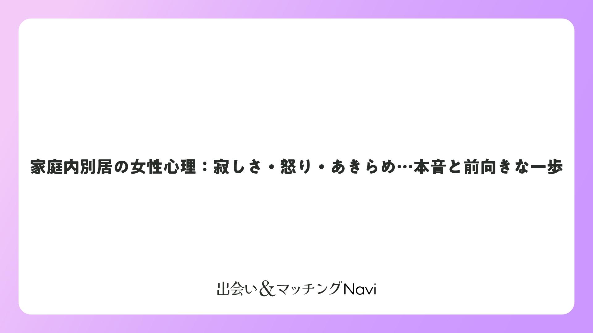 夫婦が同じ家に暮らしながらも、会話やスキンシップをほとんど持たない状態は、一般的に「家庭内別居」と呼ばれます。法律上は婚姻関係が続いているものの、心や生活の実態はすでに別々というケースも少なくありません。その中で、とくに女性側の心理はとても複雑で、寂しさ・怒り・あきらめ・期待といったさまざまな感情が同時に存在します。