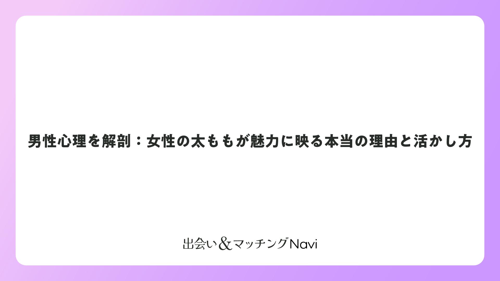 太ももは男性の心を掴む強力な武器。自信を持って活かせば、健康的で魅力的な関係を築けます。さまざまな心理をポジティブに解釈し、日々の出会いを楽しんでください。