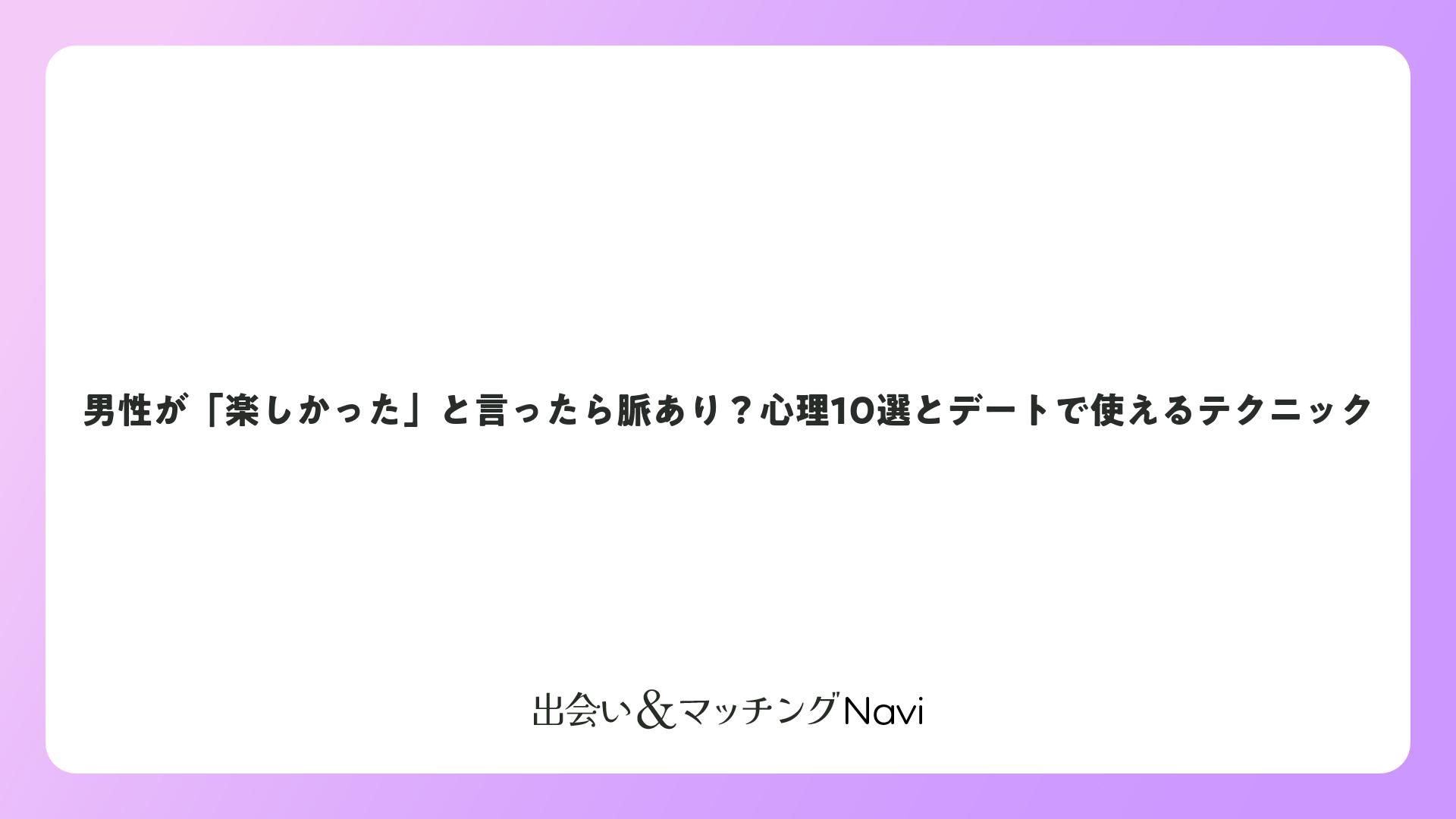 男性が「楽しかった」と言ったら脈あり?心理10選とデートで使えるテクニックをまとめました